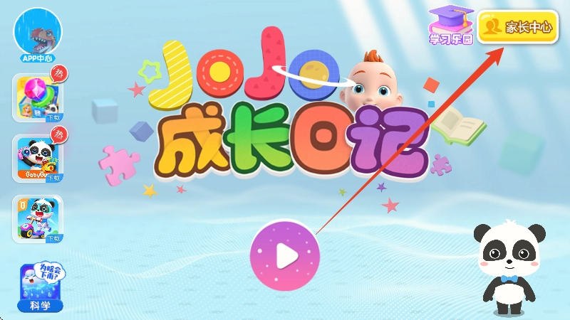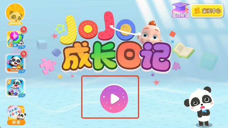 1、打开JoJo成长日记,点击中间的播放图标