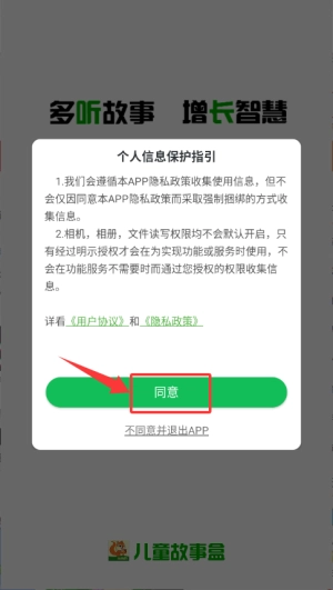 1、启动应用后,在个人信息保护窗口点击同意,进入登录页面。