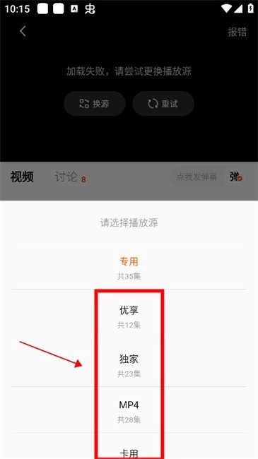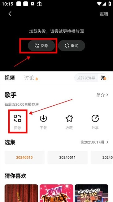 1.如出现播放失败的情况,点击【换源】