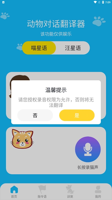 完美的宠物语言翻译器,将宠物翻译成人语,让您听懂爱宠的语言。