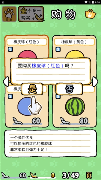5、进入购物界面,找到像皮球(红色),我们可以使用普通小鱼干购买。