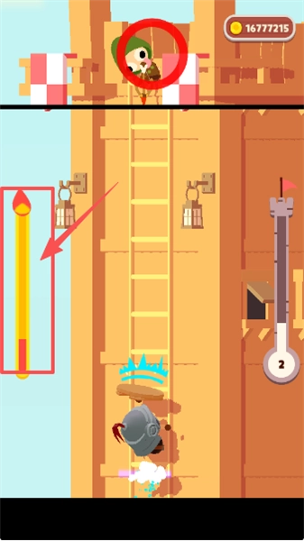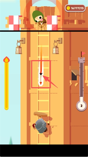 3、上面的士兵会不断射箭,我们被射击到,就会往下掉。