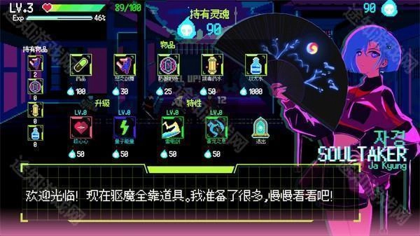 8、每击败两波敌人可以进入商店,在商店内可以消耗灵魂来购买道具和各种升级。