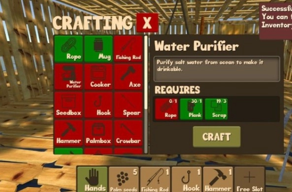 钩木→制板→扩筏,资源链简明却极易上头,新手十分钟即可造出炉台。