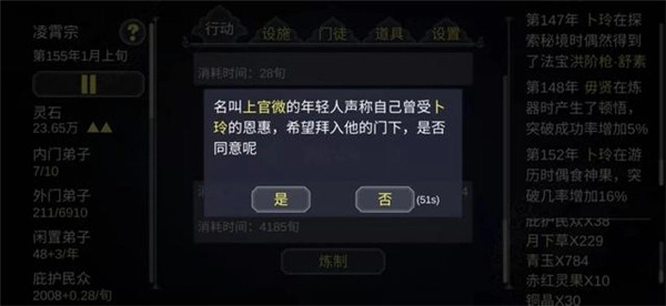 总结这款游戏会很耗时间,可以慢慢来,一上来就建立一个好的宗门不可能,估计要转世发育几代,一定要做好宗门防护,别壮烈牺牲。