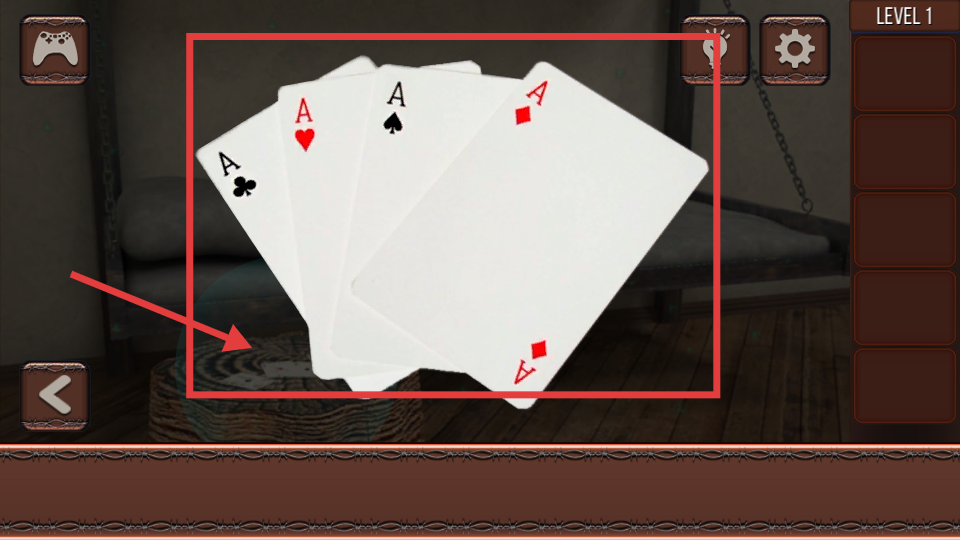 3、在探索场景的过程中,要留意椅子上的四张A牌,这些牌极有可能暗藏密码等关键信息。需仔细观察牌面的细节,为后续解开密码锁做好准备。