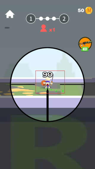 2、当玩家进入关卡后,可通过滑动屏幕操控瞄准镜进行移动,于瞄准镜里寻找到敌人,进而把准星对准敌人。