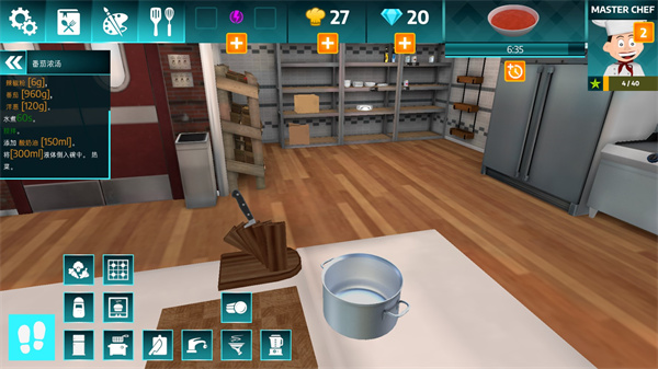 3、其制作过程极为真实,几乎都运用了真实的物理原理。比如,切菜时要按要求切取等份质量的食材;煎肉煎一段时间后,得用铲子给肉翻面;给食物添加调味料时,要精准对准相应位置等等。