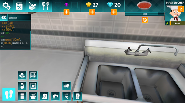 4、你必须完全遵循游戏里的物理定律,像煮汤的温度、菜品的色泽等都要符合。并且要是客户对你做的菜不满意,就会发泄情绪,把厨房弄得乱七八糟。