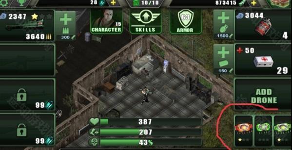 人物界面右下角有三个芯片槽,我的配置是一个红色芯片、两个绿色芯片。红色芯片增加血量,绿色芯片增加攻击,蓝色芯片增加奔跑速度。血量没必要加得太高,400左右基本就够用了,毕竟医疗包多得用不完。即便把血量堆到1200,要是打不动怪,还是会失败。关于蓝色芯片增加奔跑速度就不多说了,喜欢的话可以留一个给男性角色使用,因为他走路速度慢。
