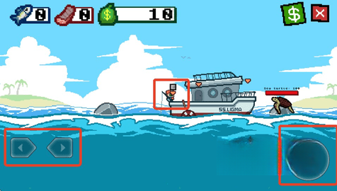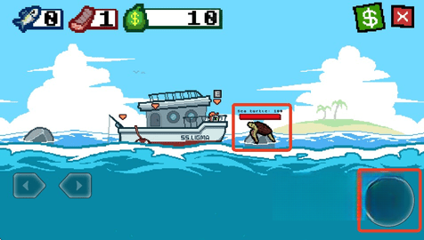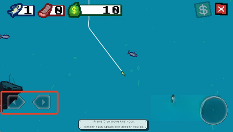 2. 通过右下角的按钮来操控鱼钩的方向。当鱼钩撞击到鱼时,会对鱼造成伤害,累计伤害达到一定数值后,就能把鱼钓上来。要尽可能精准地出击,如此才能让捕获数量达到最大化。