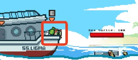1. 第一步,前往船的右侧,你的顾客就在那儿。第一位顾客是一只憨态可掬的海龟,后续还会有诸多饥肠辘辘的顾客,等待着你去招待。