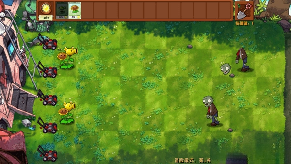4. 进入游戏后,画面如图所示。此时,玩家能够将两种植物种植在同一个格子里,进而合成出融合版的植物。例如,将向日葵与豌豆射手进行融合,就能得到向日葵豌豆射手。