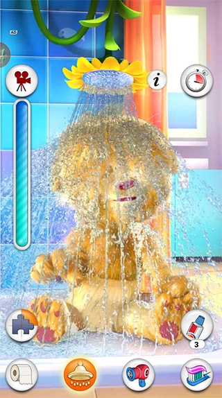 3、例如洗澡,点击金杰猫头上的淋浴器就会喷水;