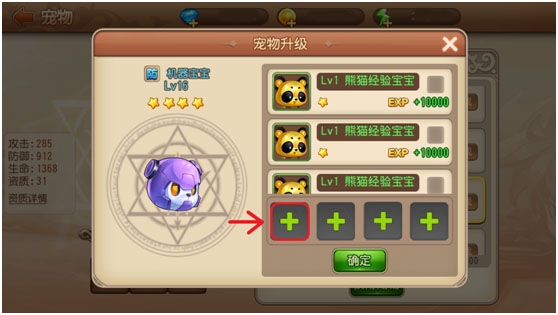 熊猫宝宝属于高级狗粮,喂食能够得到1w经验,小猪宝宝属于普通狗粮,喂食能够得到2q经验。