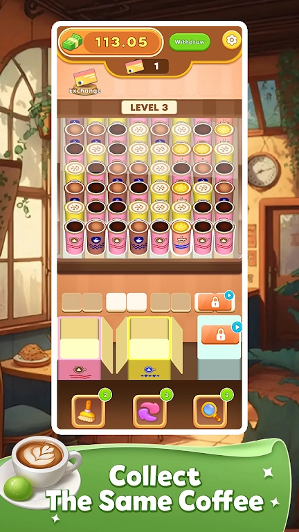 *寻找相同咖啡并放在一起交给顾客,增加了游戏的策略性。