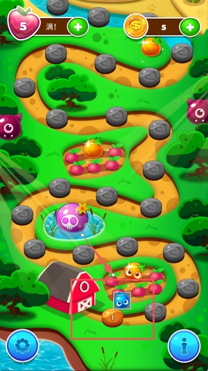 1、通过手指滑动把三个及以上的相同水果连起来,操作简单,但要想高效通关,还得讲究策略。