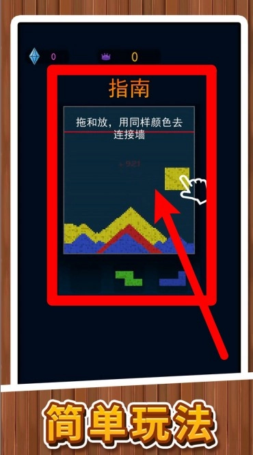 3.玩法指引:教程提示拖拽方块匹配同色连接墙体,明确核心规则与操作步骤,帮助新手快速入门,降低上手难度顺利通关。