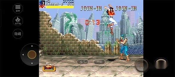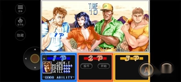 1、进入恐龙快打手机版游戏后,选择“投币-开始”,即可进入角色选择界面。