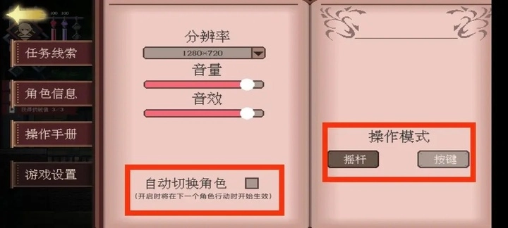 进入地图后可以先点左上角头像,设置一下操作模式然后关闭自动切换角色。我个人觉得摇杆比较方便,关闭自动切换是方便跑图。旁边的三个小框序章用不到,但是第一章就比较需要了,有一说一,蛮容易忽略的。
