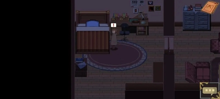 左上角表弟的床上和桌上还有中间的书,都可以获得普通线索,完善剧情用的。会让过学识判定,消耗行动点。右下角的书拿起会过一个意志判定,得到普通线索。有时候会在左下角。