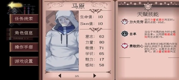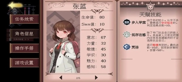 看角色信息可以了解各个人物的技能我也会把截图放在下面,克里斯跑图超级快,耿瑞对女性社交有特攻,曹菁荧的灵感也是百分百成功在第一章超有用。