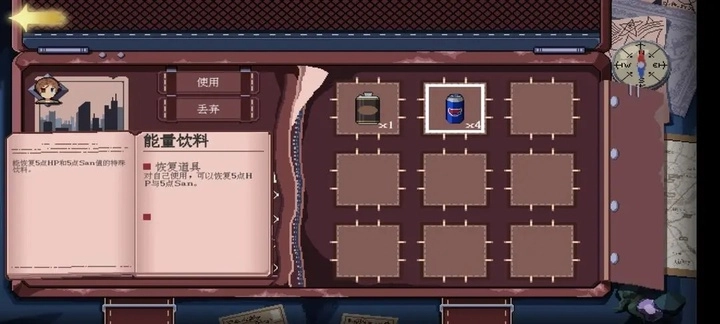 第五个调查按钮,开关门之类的经常用。上面那个就是每个人物的背包了。