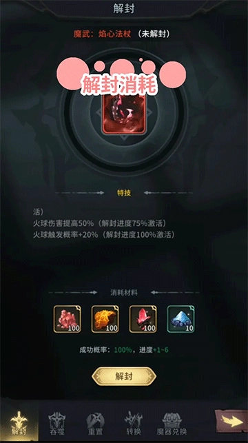 注意:解封什么时候都可以进行,不管是重新吞噬,洗练属性其他任何操作都不会改变解封进度条,可以先解封再干其他都行,