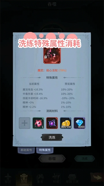 注意:千万不要先吞噬再洗练特殊属性,吞噬完洗练的属性只是数值,不会有类型的
