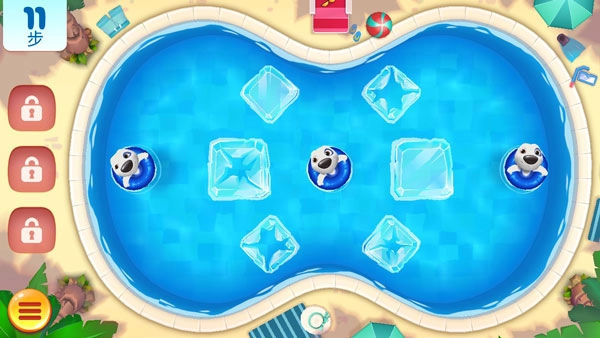 只需通过手指操控泳池里的一个角色,让其拉伸一定距离后弹射至其他相同的角色处,便可实现消除。