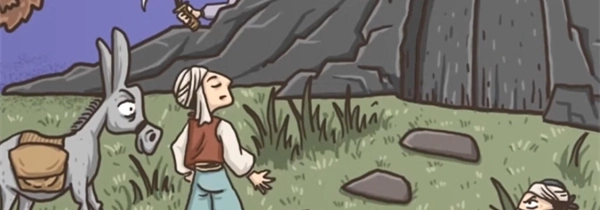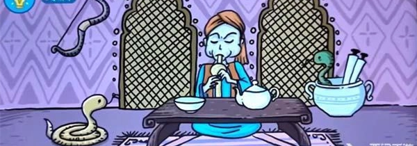 点击小孩出现地三鲜,点击牛尾巴出现牛肉拉面,将左边的话拖动到玉米上面出现爆米花,将斧头给书生出现生椰拿铁,点击女生出现老婆饼,将玉米地的破碗给母鸡出现叫花鸡,将玉米地的老母猪拖动到老奶奶旁边出现珍珠奶茶,点击驴出现驴打滚,将左边的弓箭拖动到公鸡的下面,点击一下弓箭发射出现宫保鸡丁,点击公鸡下单,将蛋拖动到树上,然后将左下角的花也拖动到树上出现松花蛋;