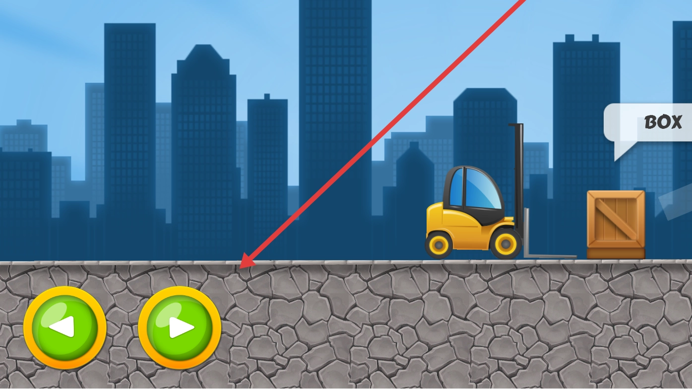1、利用左下角的按钮来操作黄色叉车的移动,靠近场景中的木箱,准备推送。
