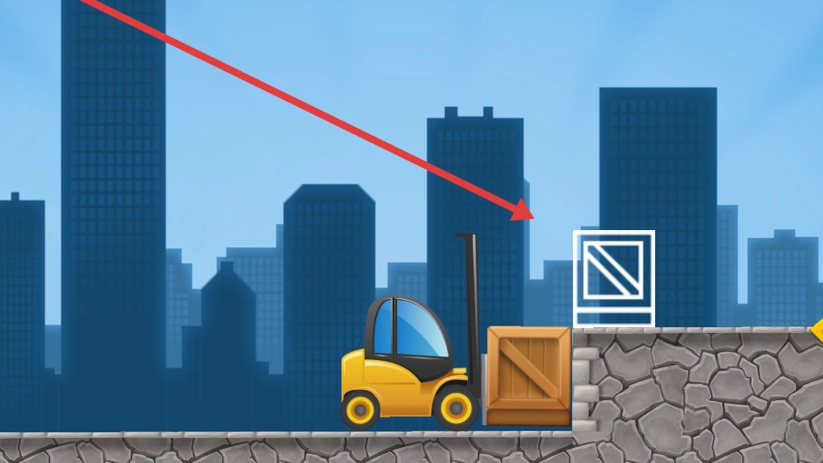 2、通过操纵叉车来推动木箱,将其移至白线标识的目标位置,完成任务到达下个关卡。