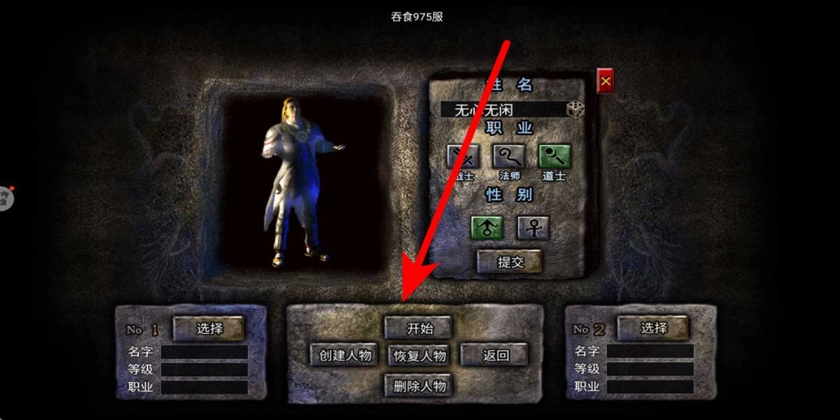 1. 于登录界面选定服务器后,点击“进入游戏”按钮,随即进入人物创建页面。在此页面,依据自身需求挑选职业与性别,填好角色名称,而后点击“开始”,待角色创建完成,即可踏入游戏世界。