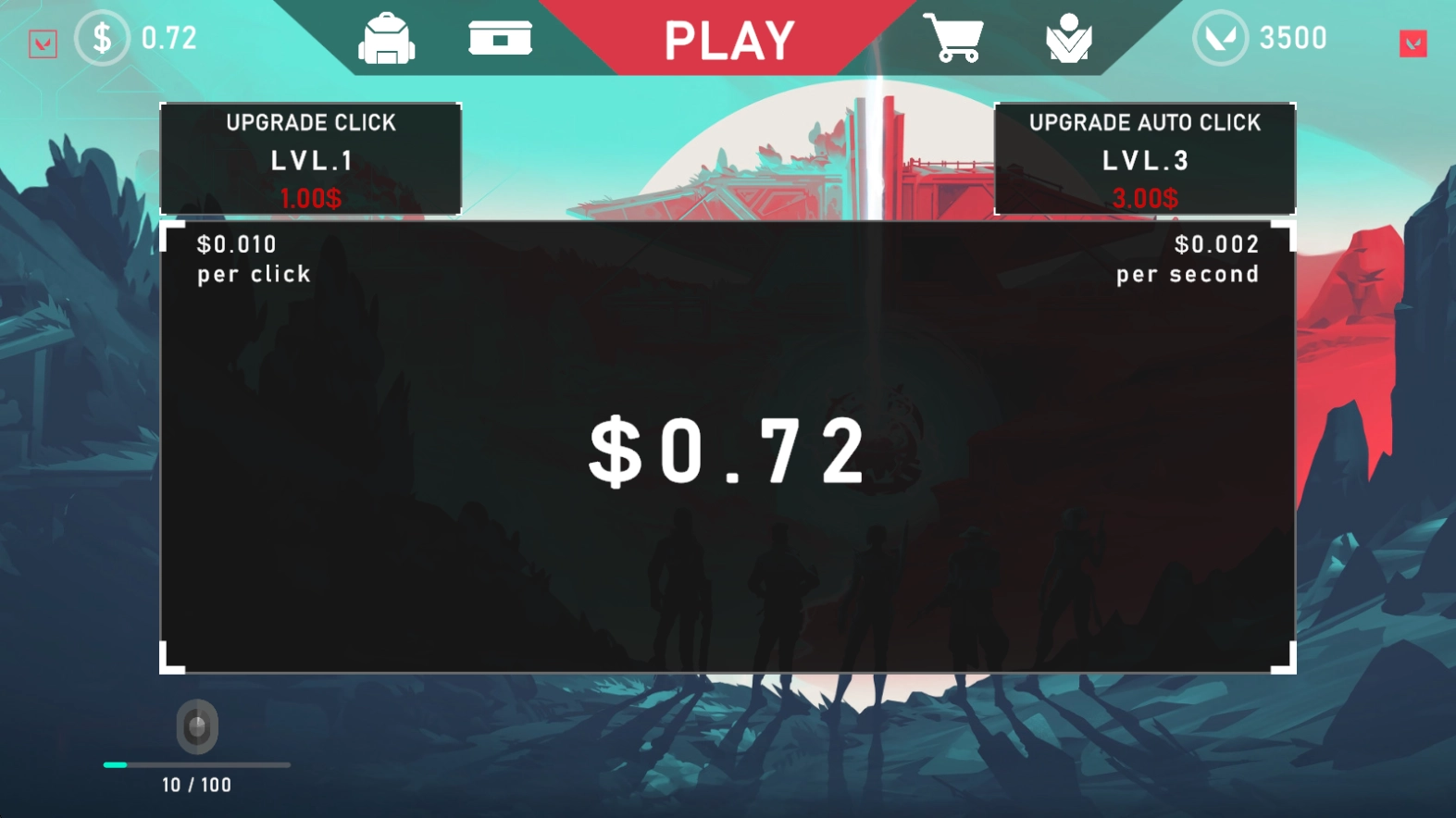 1、刚进入游戏,首先映入眼帘的是金币界面,此时只需点击一下屏幕,就能获取0.01的金钱。