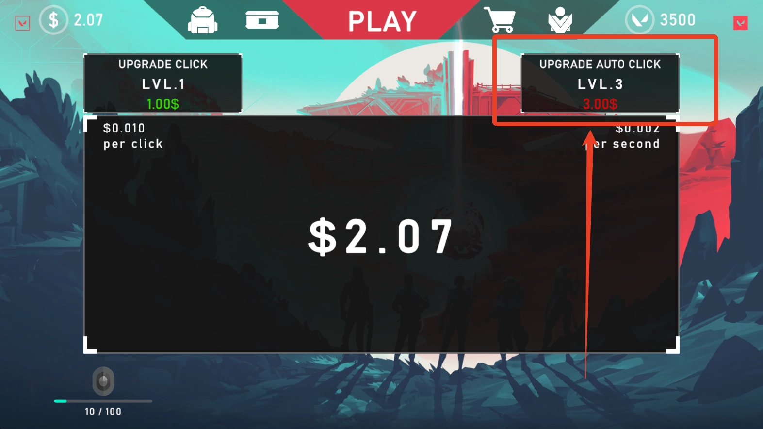 2、当你的金币足够的时候我们可以点击右上角升级金币等级,达到了两级就能解锁自动增加金币的功能。