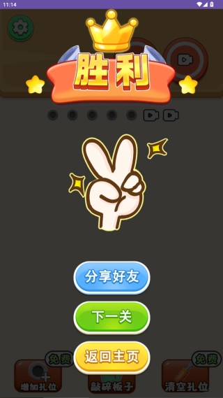 4、当成功清空木板后,便能顺利通关,随即解锁全新主题工坊与趣味道具,进而挑战难度更高的任务。