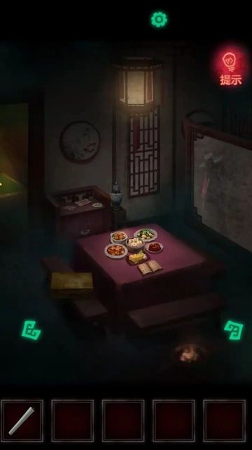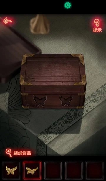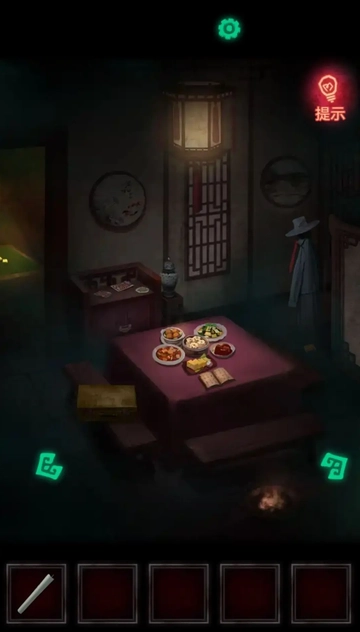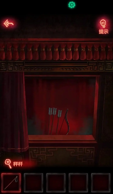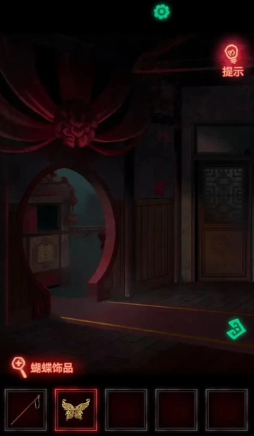 再次回到饭菜所在场景,使用密码打开饭菜后方的柜子,从中获取秤杆。转身留意之前小纸人所处位置,此刻已变成鬼爸妈,这算是个小高能情节。接着回到轿子旁,用秤杆挑起盖头,得到弓剑,用弓剑射落气球,拿到一个蝴蝶饰品。最后回到小纸人消失的地方,借助秤杆拿到高处的蝴蝶饰品。