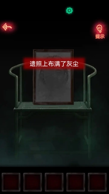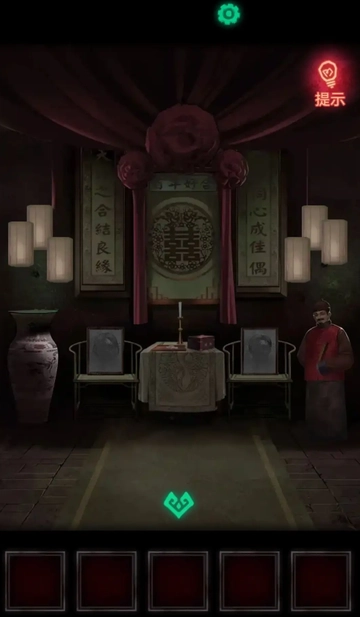 一开始先过剧情,依照提示去开门,找到剪刀把门打开,看到红衣老婆后就开始进行拜堂仪式。拜完高堂后,所有人都消失了,游戏正式开启。首先查看一下椅子上的两张遗照,提示显示照片都很脏,这种情况下,理所当然得找个东西来擦一擦。