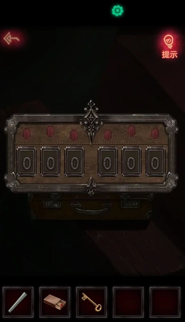 左下角凳子上有个密码箱,注意观察数字密码上面有六个灯笼图样,也就是说密码写在灯笼上,一会找灯笼。