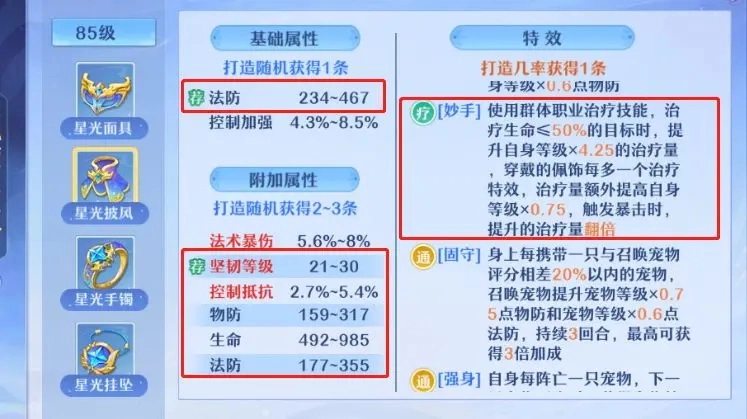 附加属性:坚韧等级(优先)、控制抵御、物防、生命、法防