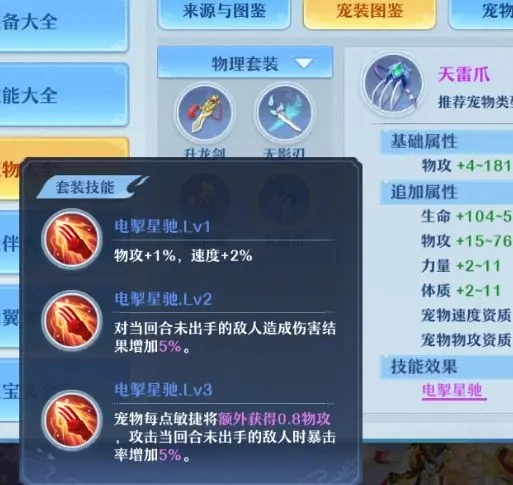 3级效果,天雷爪可以将每点敏捷转化为0.8的物攻,让重明有速度的同时也保证了一定的攻击力。